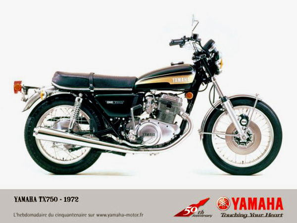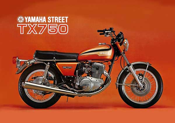 TX750(1972(昭和47)年)は、XS-1(1970(昭和45)年)に次ぐ、ヤマハ製4ストローク大型スポーツバイクの第2弾で、ヤマハ初の「ナナハン」です。