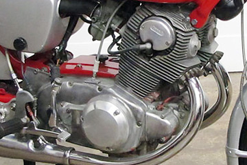 ![]() 我が世の春を謳歌する英国車への追撃を最初に始めたのがホンダです。DOHCヘッドを持ち込み、英国車より200㏄少ない450ccの排気量で、同等の性能を掲げました。
