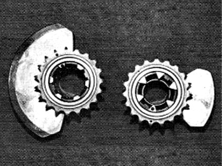 TX750のエンジンを語るにあたり、まず初めにTX750特有のオムニフェイズ・バランスシステムを紹介しなくてなりません。 ピストンが上下動する際に生じる振動を打ち消すために、2本のバランスウエイトシャフトがエンジンサンプ内に配置されており、ギアを介し、1本のチェーンでクランクシャフトと接続されています。