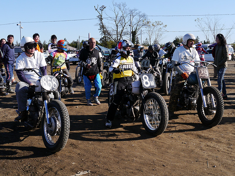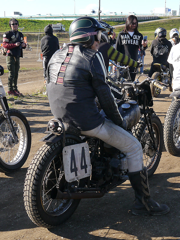 一緒にバイクを見ていたガイジンさんが、見ず知らずの私に「最高にクールだ」と話しかけずにいられないほどの仕上がりでした。(後で英国のフラットトラック専門誌「SIDEBURN」の取材が来ていたことを知りました。ガイジンさんは雑誌のクルーでありました)