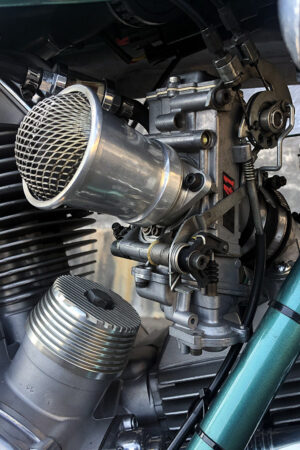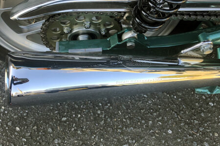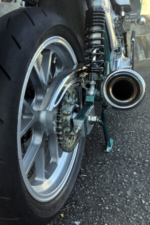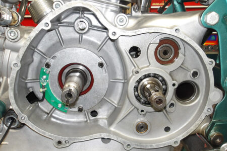 こちらの車両は確か80年代から広告や雑誌記事でお見掛けしていますが、今も進化が続いているのは素晴らしいですね! 右チェンジの車両は、後の左チェンジとは違った点火システムだったかと思いますが、プライマリーギヤの奥のスペーサーみたいなものがフライホイールでしょうか? スゴイ走りをしそうですね!