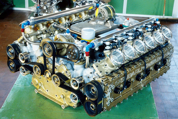 水平対向エンジンへのこだわりという共通点から、スバルとカルロ・キティ率いるF1用エンジン製造業者モトーリ・モデルニは急接近します。いや、カルロ・キティはスバルの持つ金の匂いに引き寄せられただけだったのかもしれません。とにかく、モトーリ・モデルニはスバルの金でF1用フラット12エンジンの設計・製造を請け負うことになり、1988年、スバル・モトーリ・モデルニ1235が完成します。
