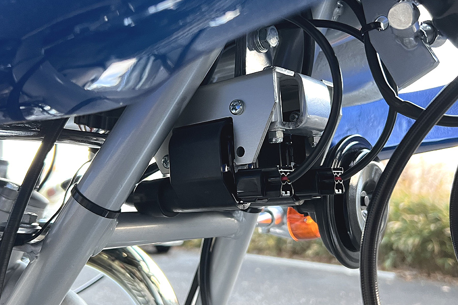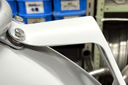 FRPパーツの内部応力をステーでねじ伏せずに、内部応力を解放させています。