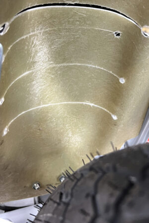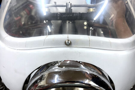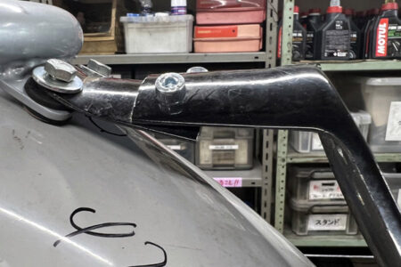 スクリーンとアッパーカウルのRを合わせるべく、アッパーカウル側に細かい切れ目を入れ、微妙にRを調整しています