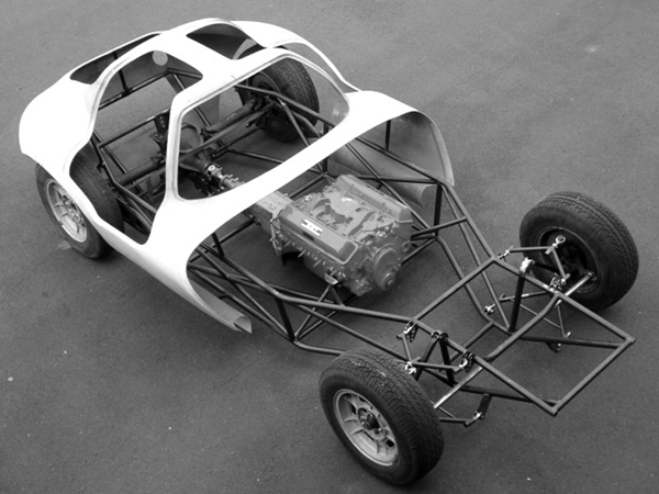 クロモリ鋼管のスペースフレームは、幅で4インチ(10cm)、ホイールベースで19インチ(48cm)も広げられた。これによりキャビンは拡大され、ドライバー着座位置も前に移されている。